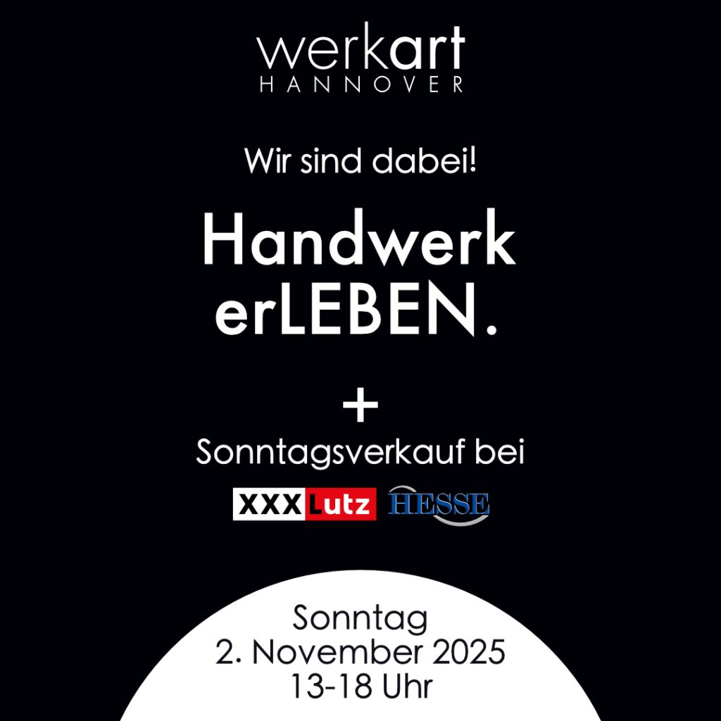 Vom 24.12.2024 bis zum 06.01.2025 hat die werkart Hannover geschlossen. Ab dem 07.01.2025 sind wir wieder für Sie vor Ort da.